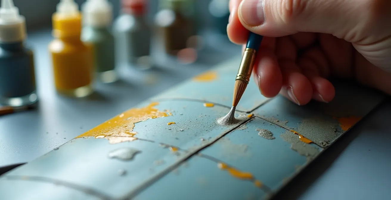 The most common point of failure when using chipping fluids (or the hairspray technique) is not the application, but the timing. Activating the chipping layer is a delicate dance that happens within a specific “curing window.” This is the period after the topcoat of paint has been applied where it is firm enough not to dissolve into a mess, but has not yet fully cured and bonded, which would render the chipping fluid underneath inert. Miss this window, and you’ll either strip off huge, uncontrollable flakes of paint or struggle to make any mark at all.